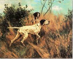 The husband started to approach the area of the creek bottom where the dogs were pointing. This is the common practice while hunting birds with dogs. The bird or birds are flushed, providing a sporting shot for the hunter.